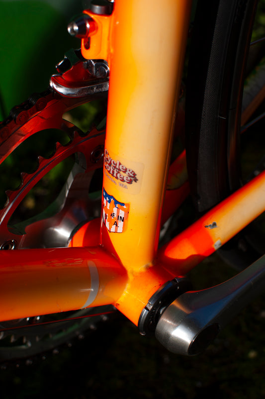 Early 90s Serotta Tri-Colorado Tange Prestige/Shimano 600 Ultegra Road Bike, made in USA, Hi-Vis Orange & Pink, 56cm/LG