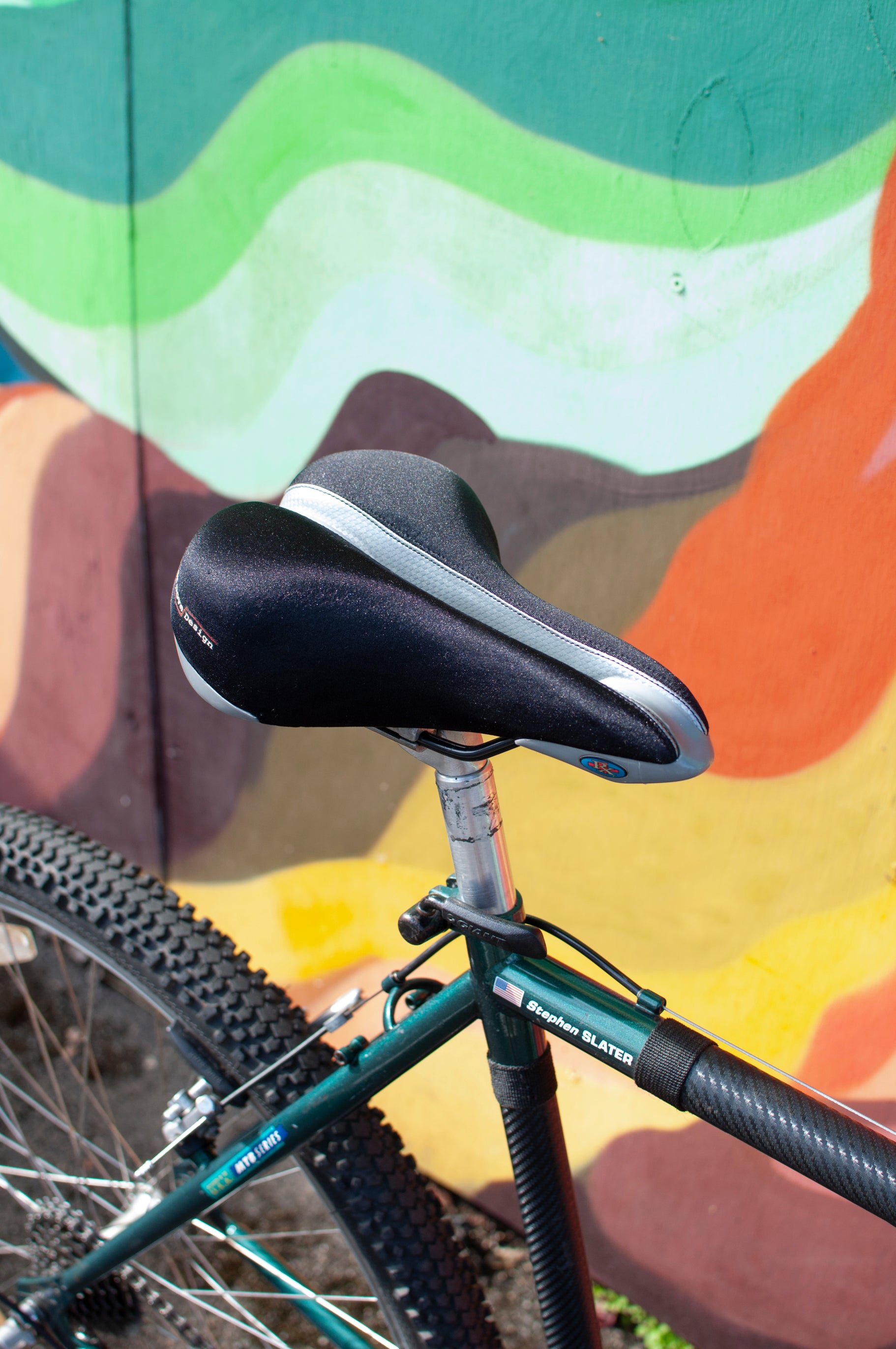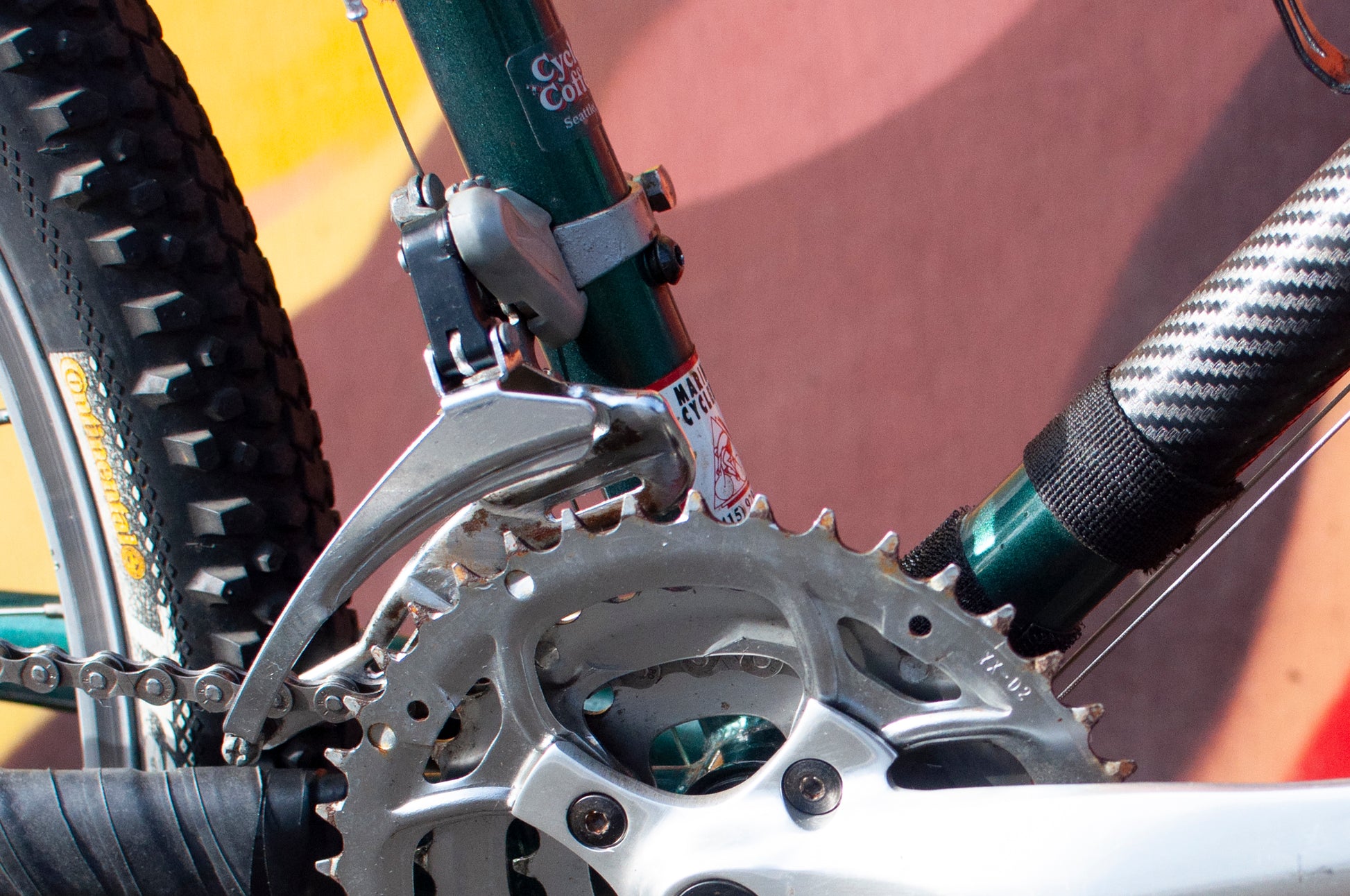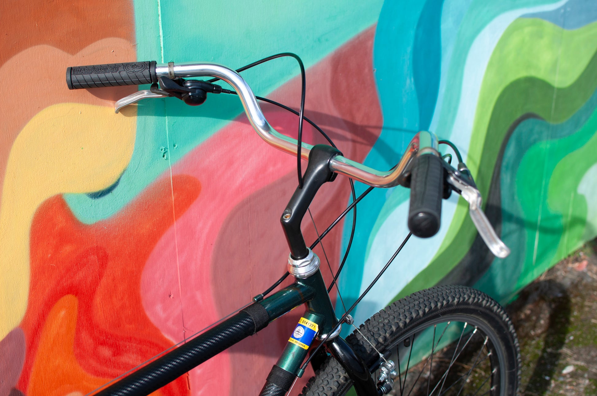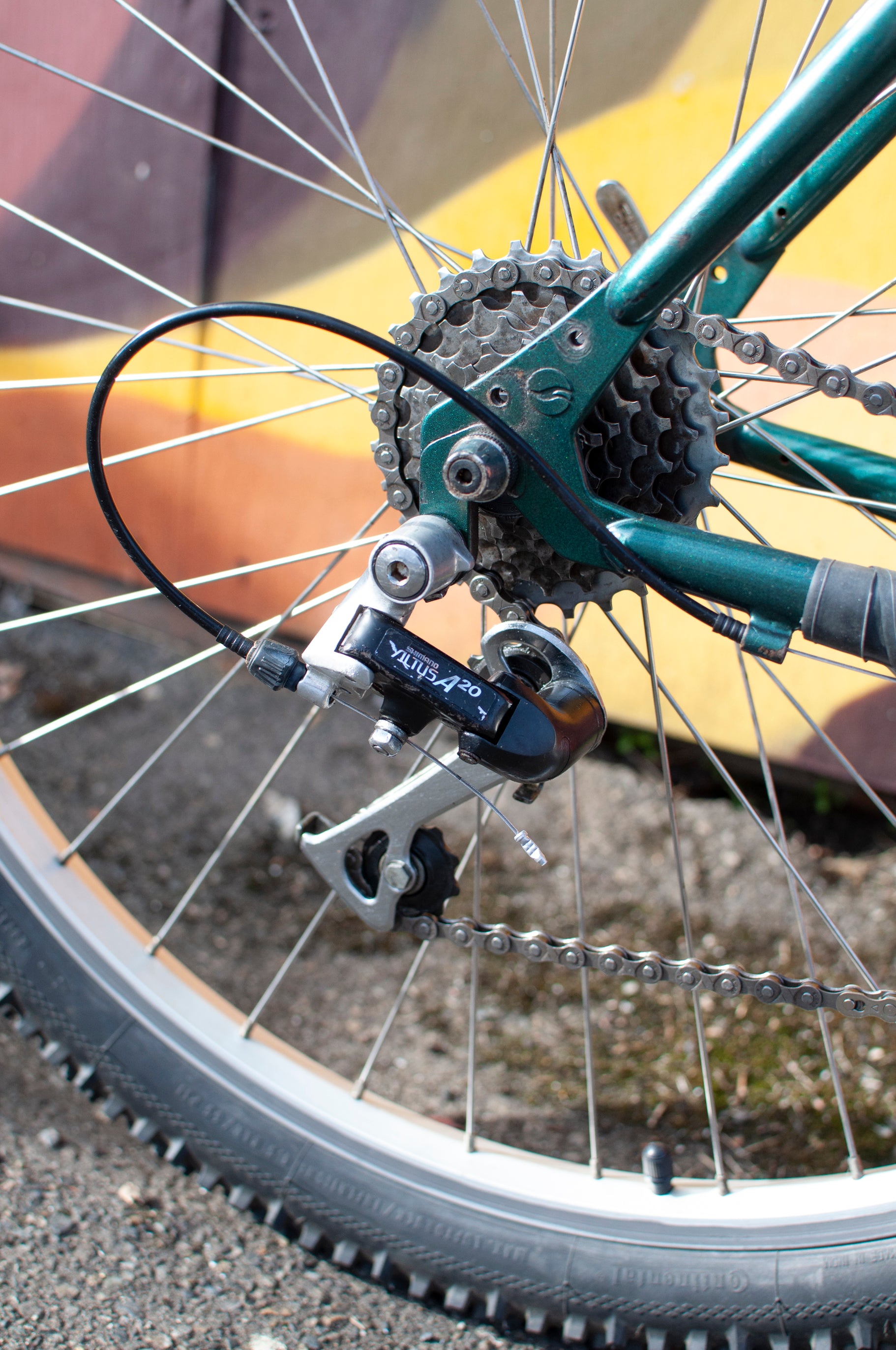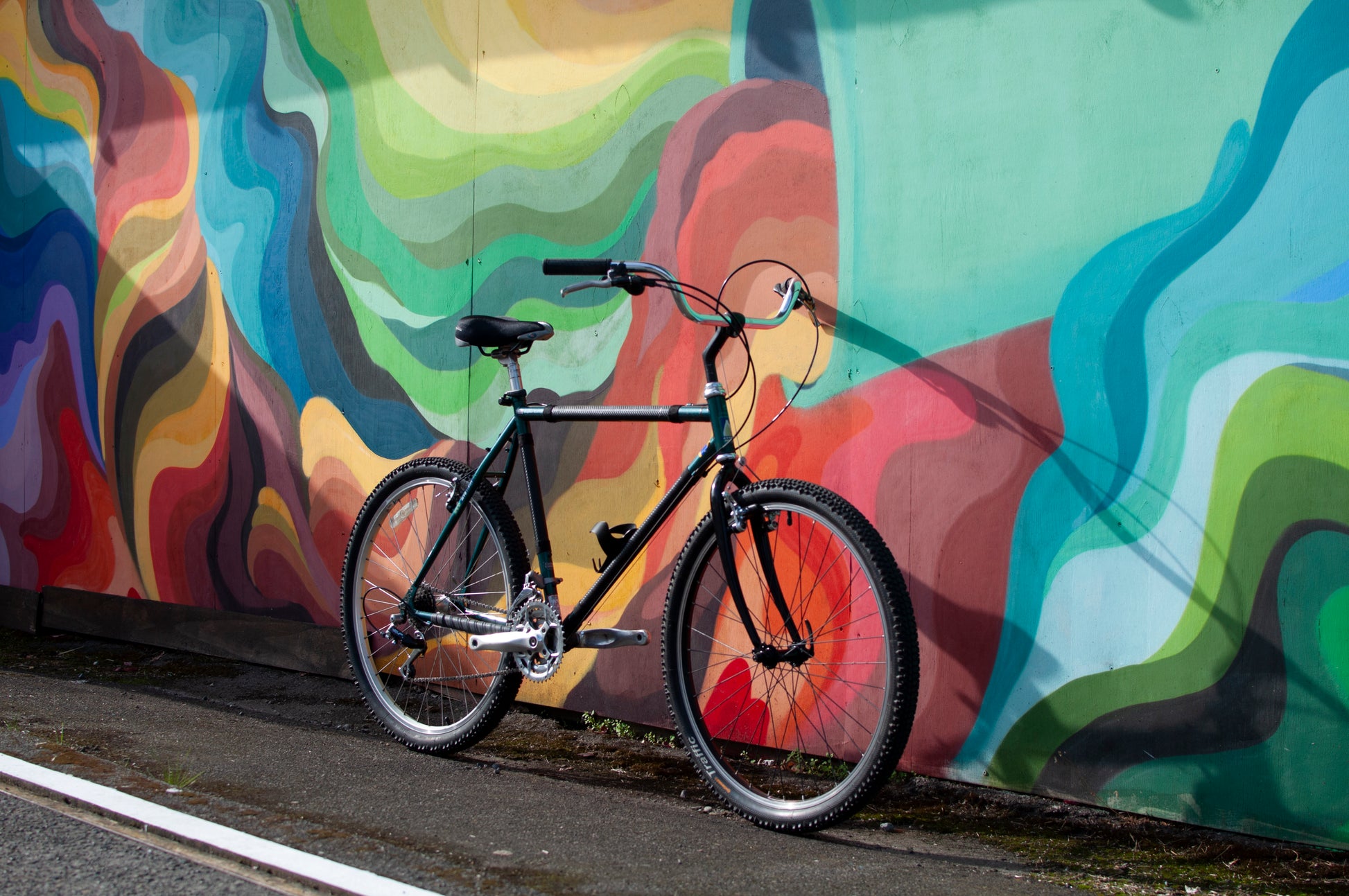 This bike, originally sold as a rigid mountain bike in the 90s, was well loved by it's previous owner before finding its way to us. It had a lot of customizations, but we reset it with our popular, comfortably upright build style for cruising around the city and hitting some trails. It's well suited to Seattle, with eyelets for mounting fenders, and a wide gear range to climb hills with ease and go faster when you want to.