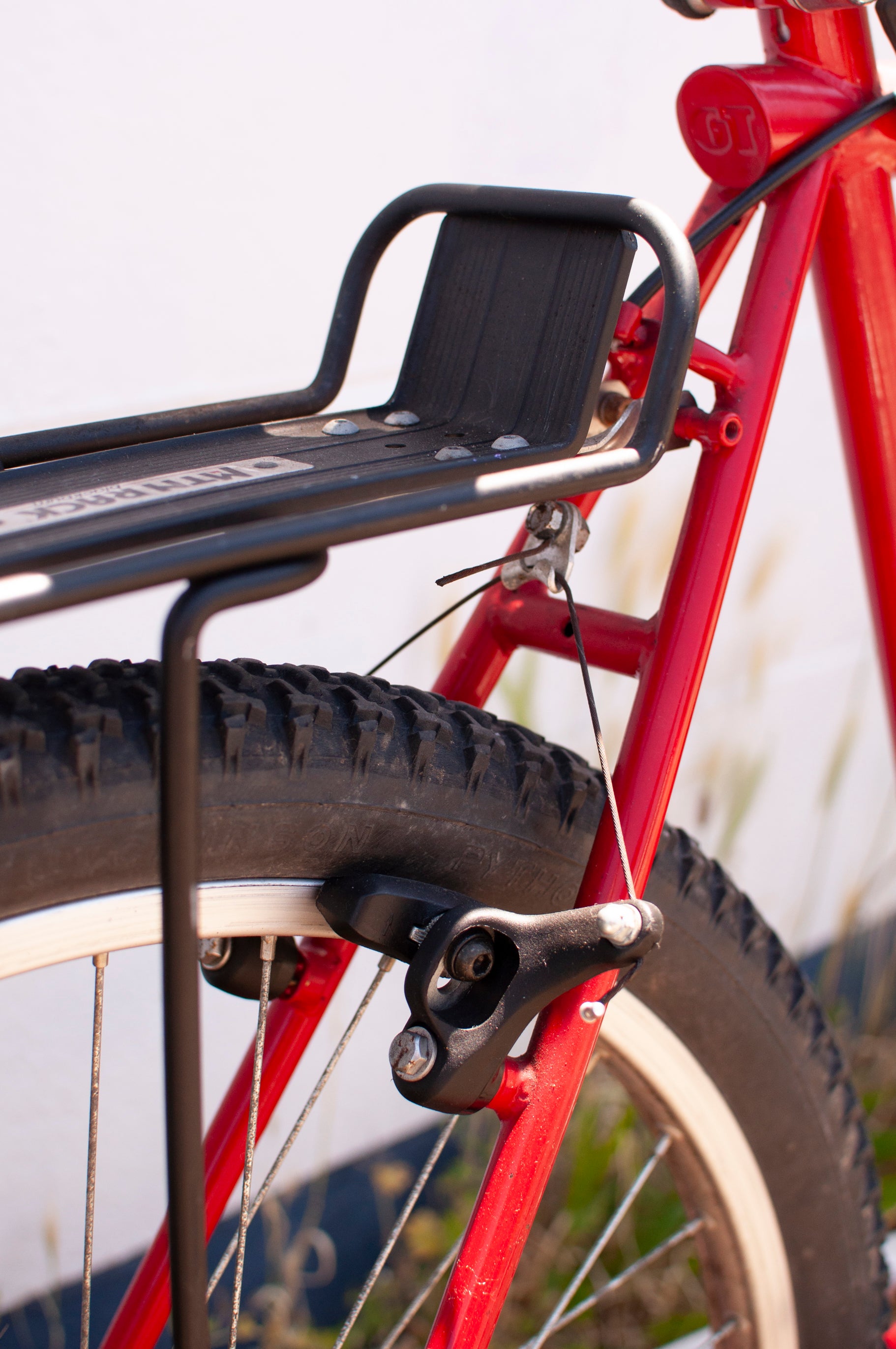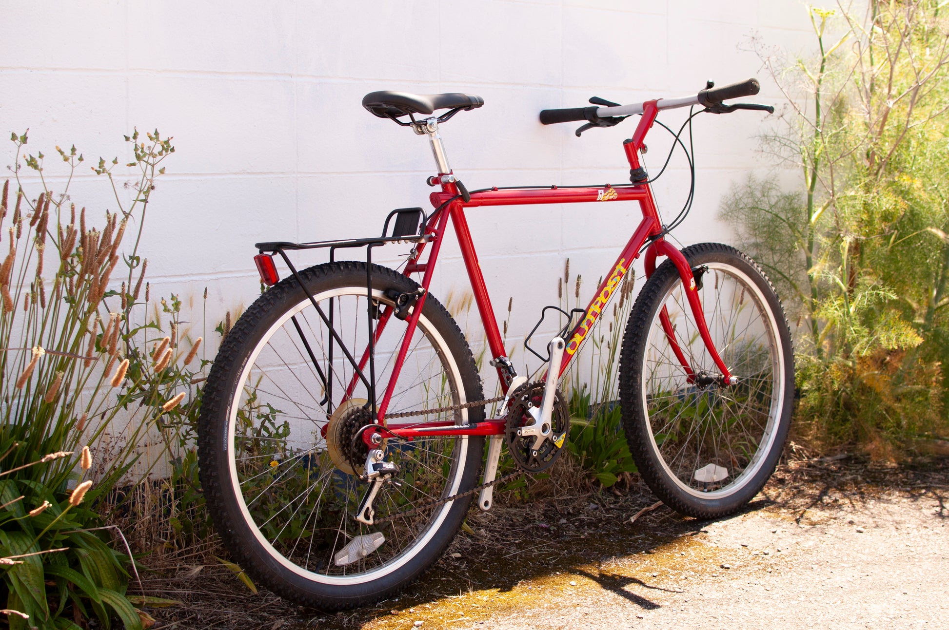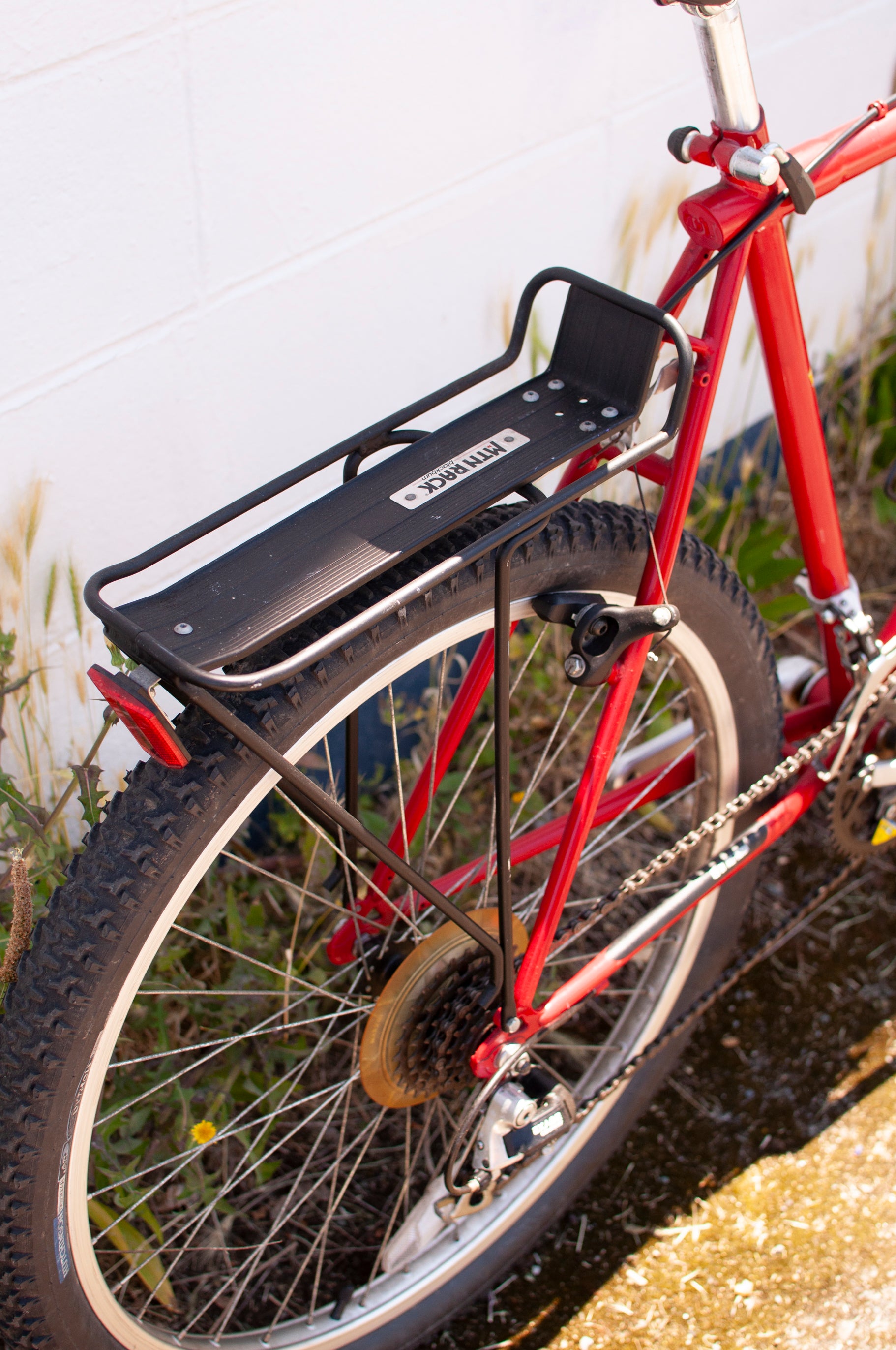 Kickstand, black bottle cage, black Blackburn Mtn Rack, and the original reflectors.