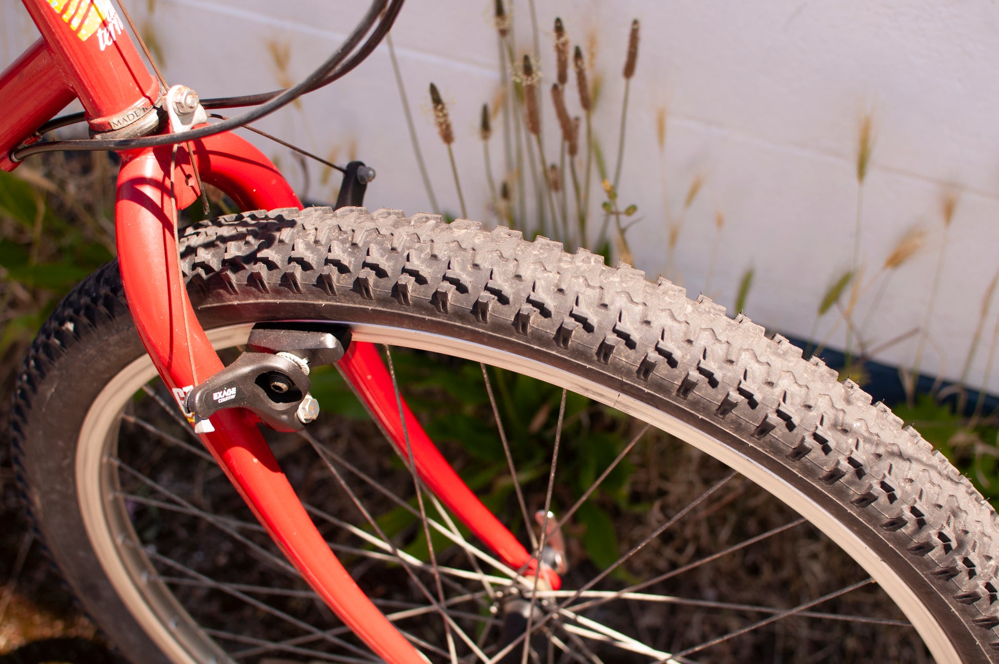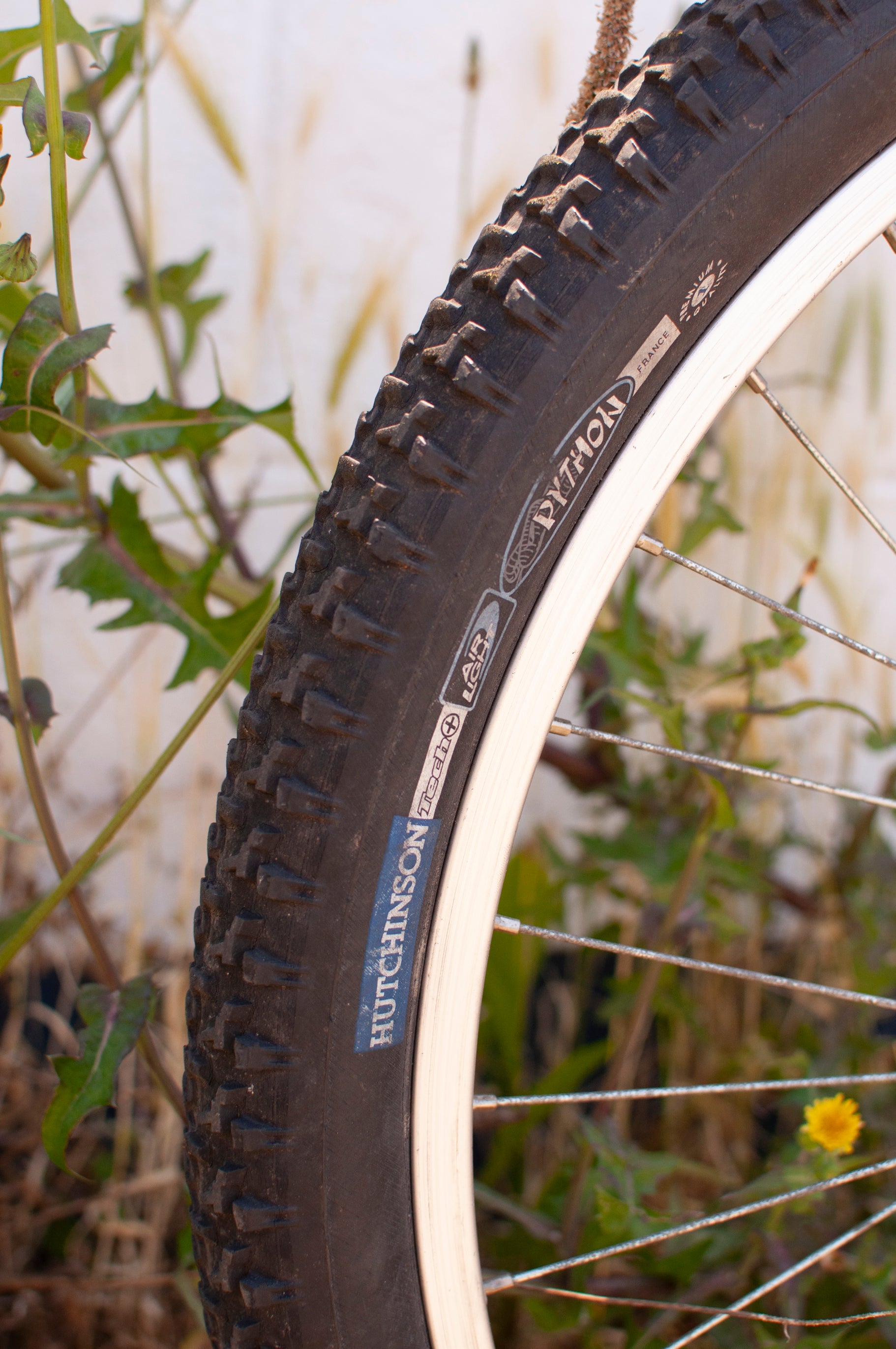 26 inch wheelset with Araya aluminum rim brake rims and black hubs. 26x2.0" cushy, knobby black tires. Good for bumpy city streets and trails.