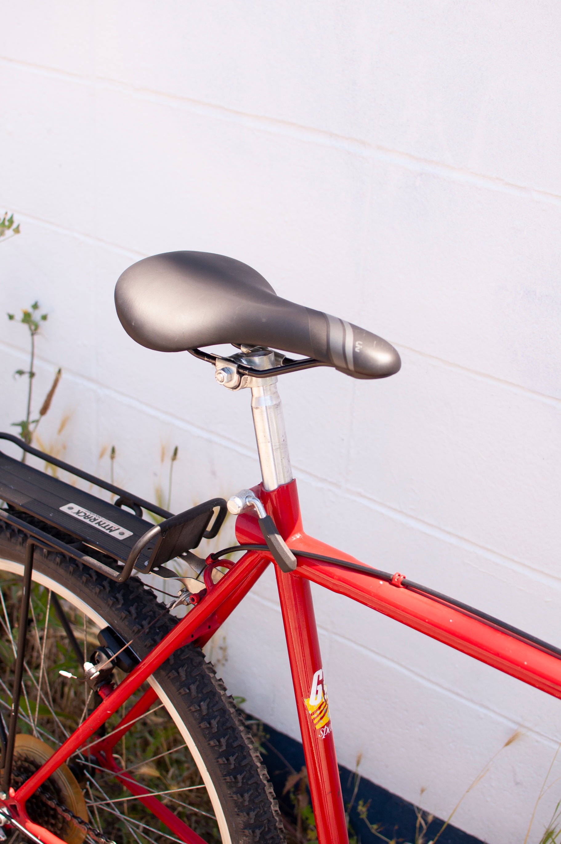 Original seatpost, silver, and newer black Liv saddle with some cushion.