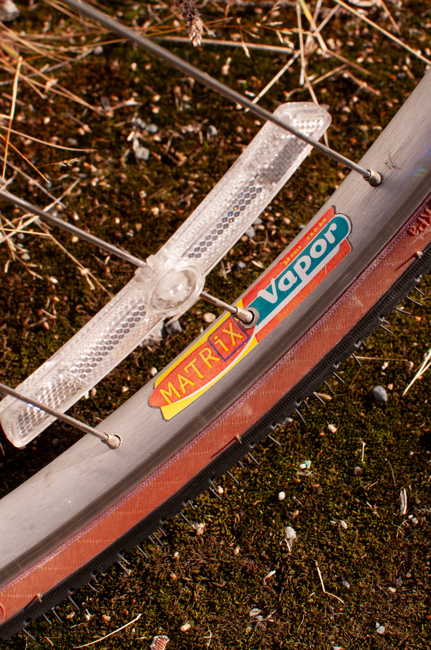 700c wheels with Matrix vapor silver aluminum rims, and silver Shimano Parallax hubs