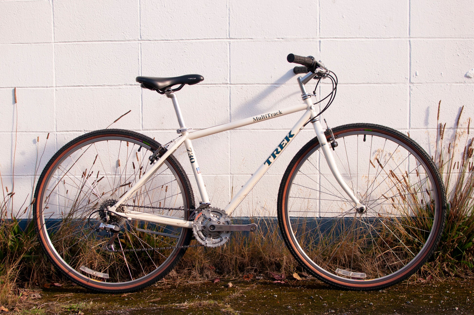 90s Trek 730 Multitrack Steel Hybrid bike, Pearl White & Navy Blue, 39cm/XS