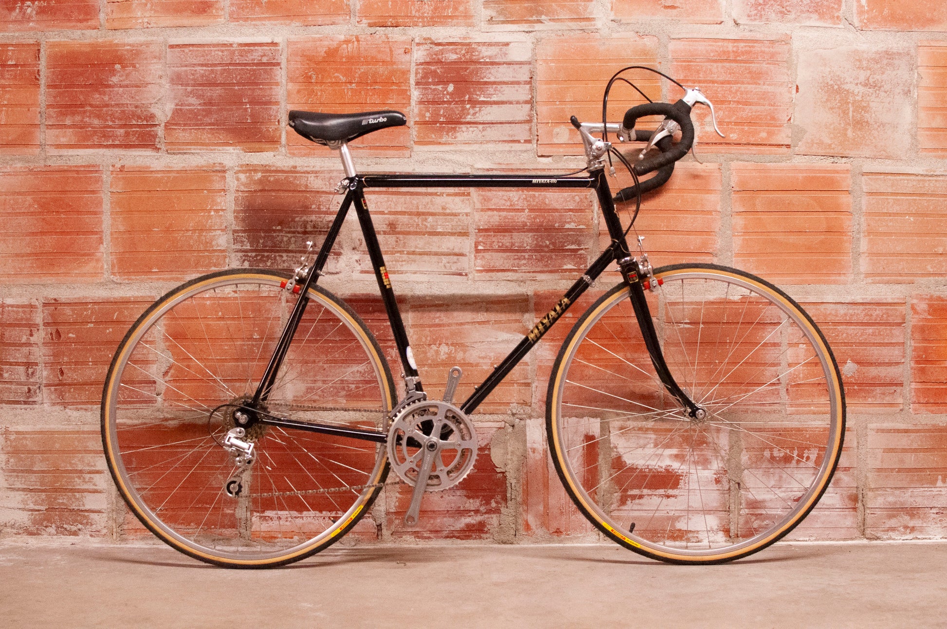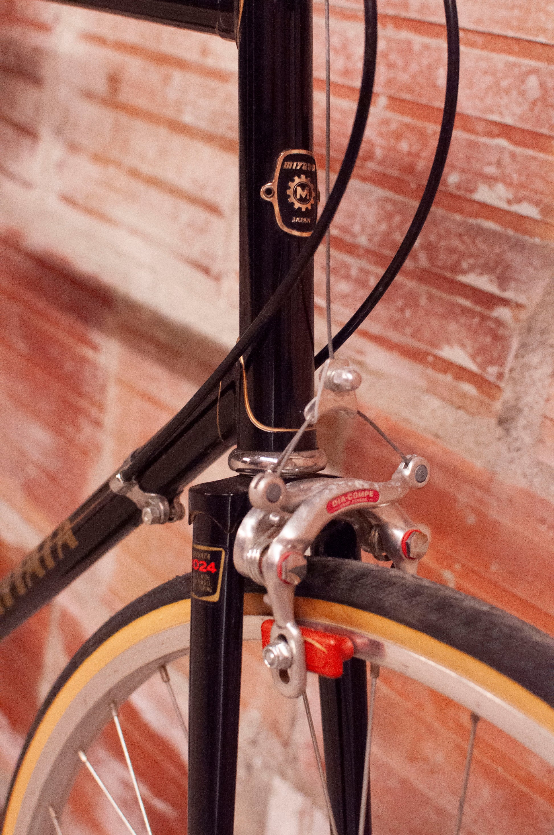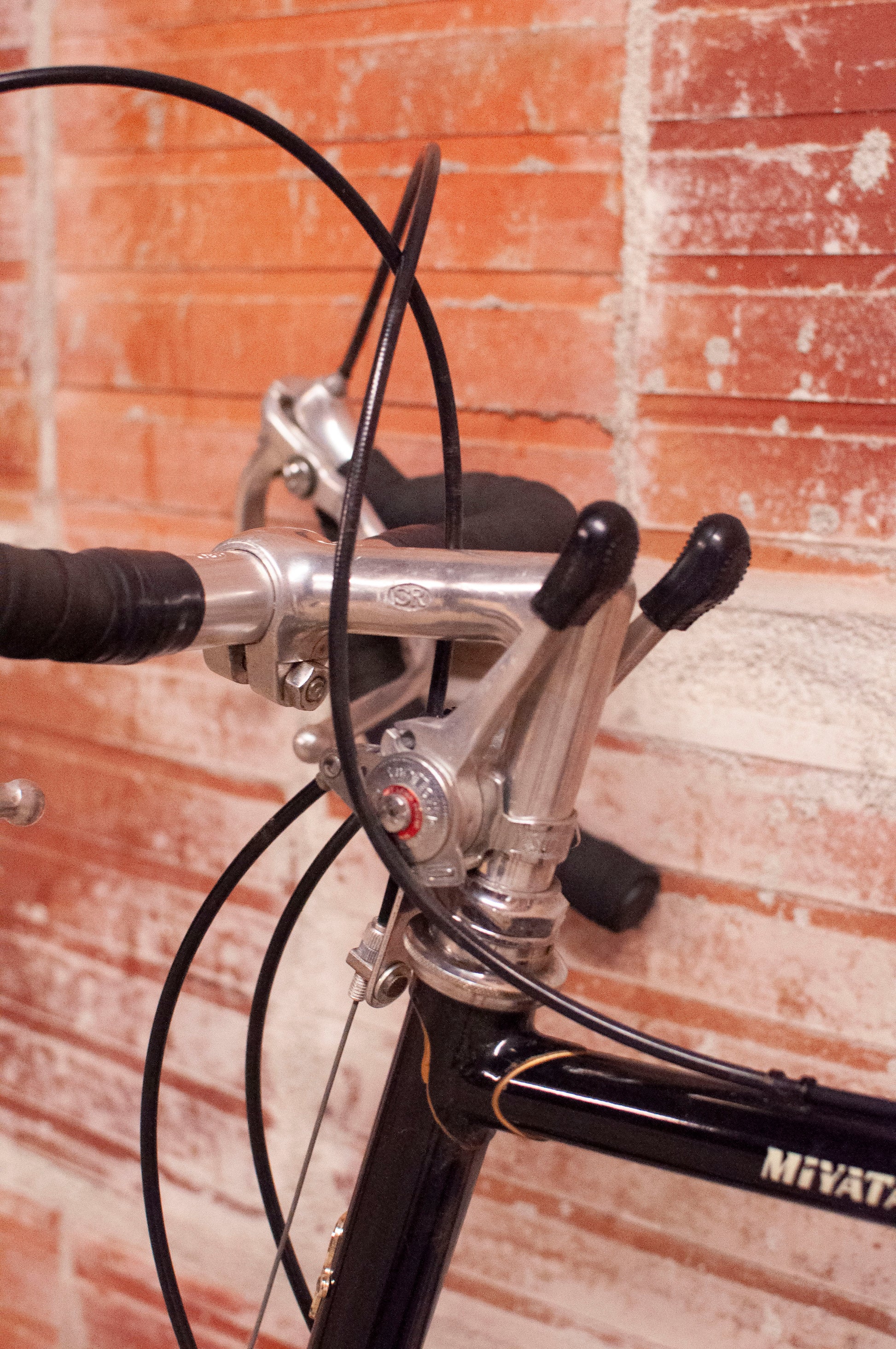Beautiful and ready to ride vintage Miyata bicycle, black with gold and red accents. In good condition with minor imperfections in the paint. It's definitely for a tall rider, probably 6'2" and up, with a 63 cm frame. Good condition for a 1980's bike, kept in good shape by a collector.