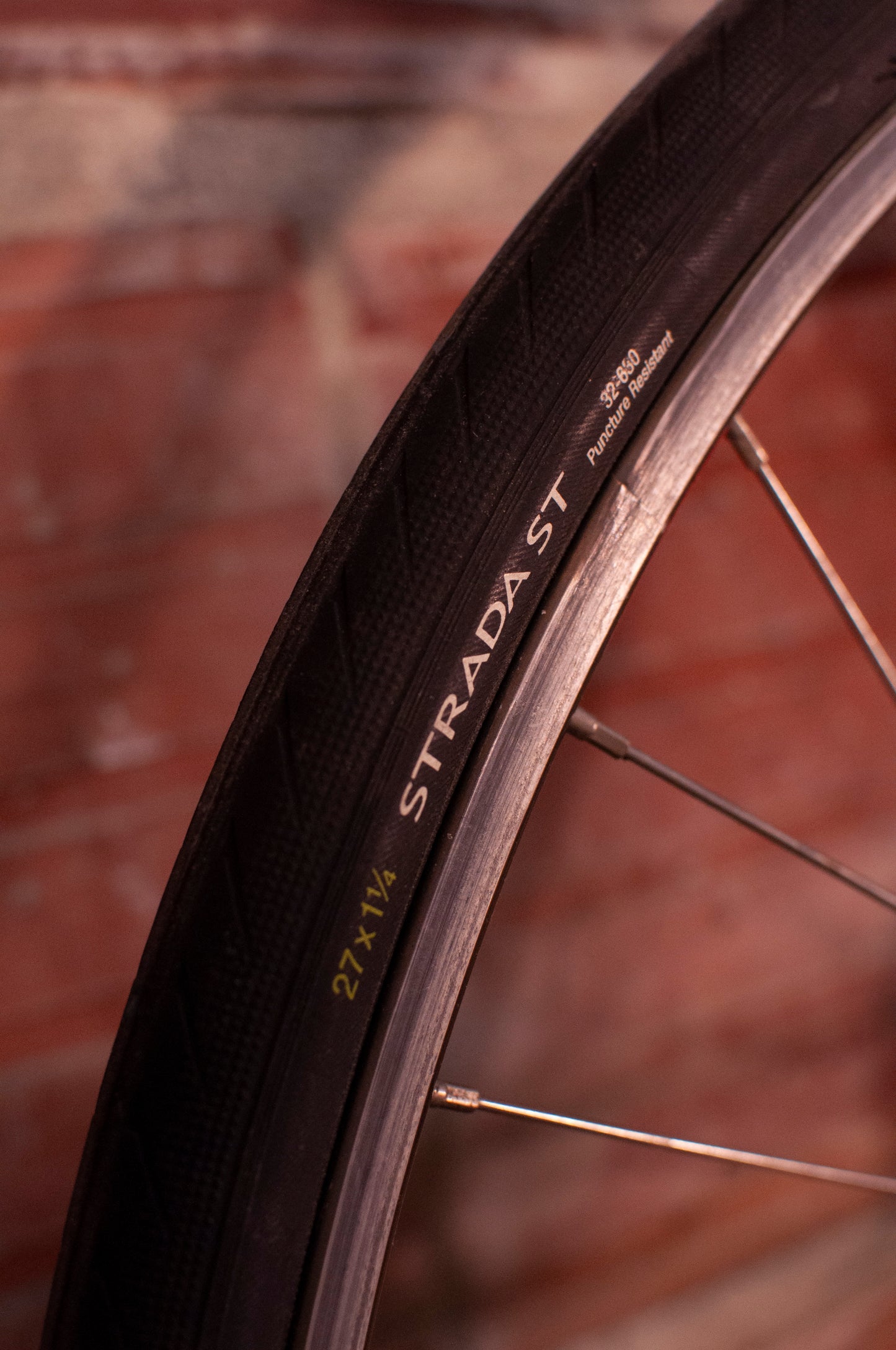 Sakae drop bars, Custom quill stem, Dia Compe brakes. Slick black bar tape. Comfy black trek seat. Front and rear reflectors.