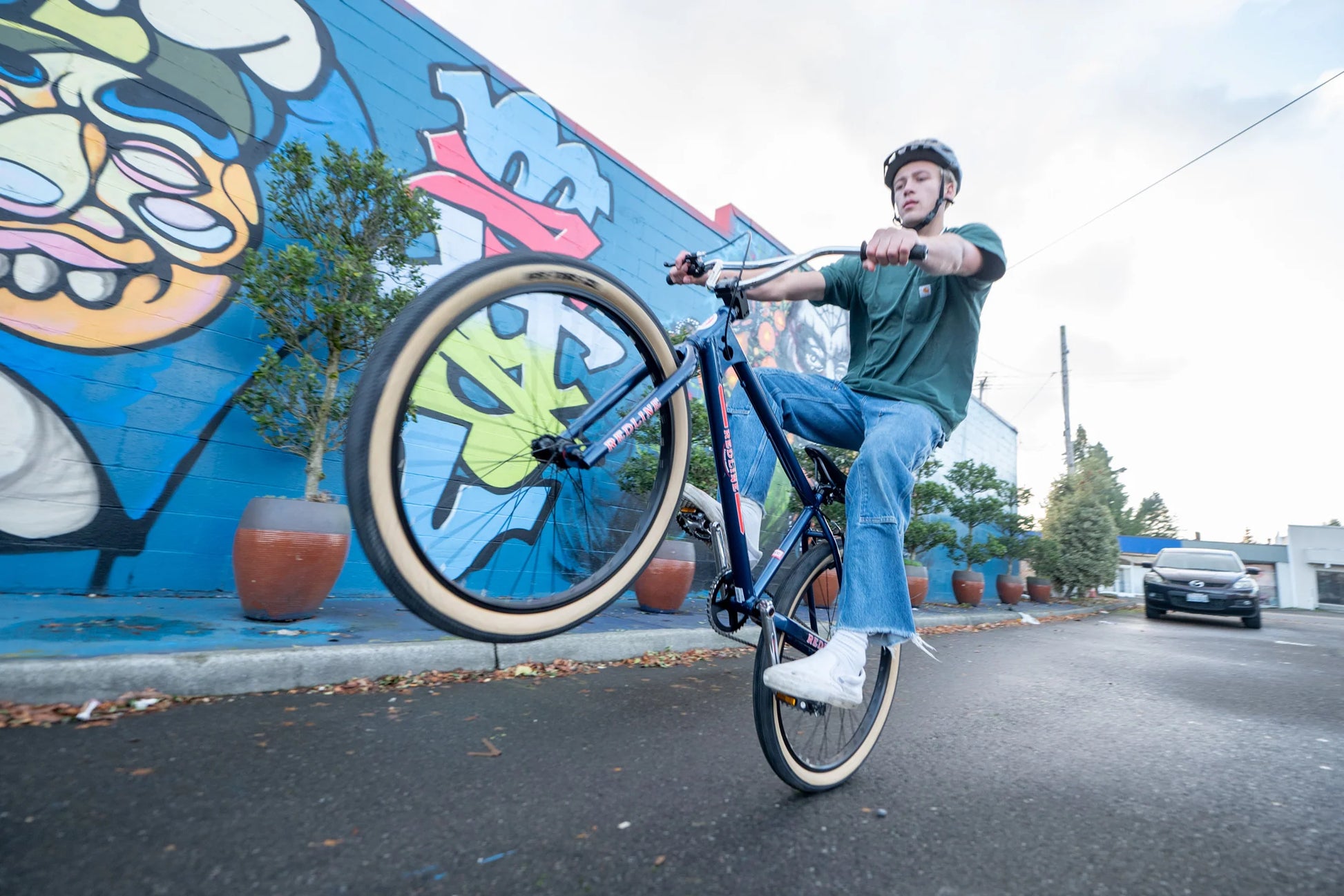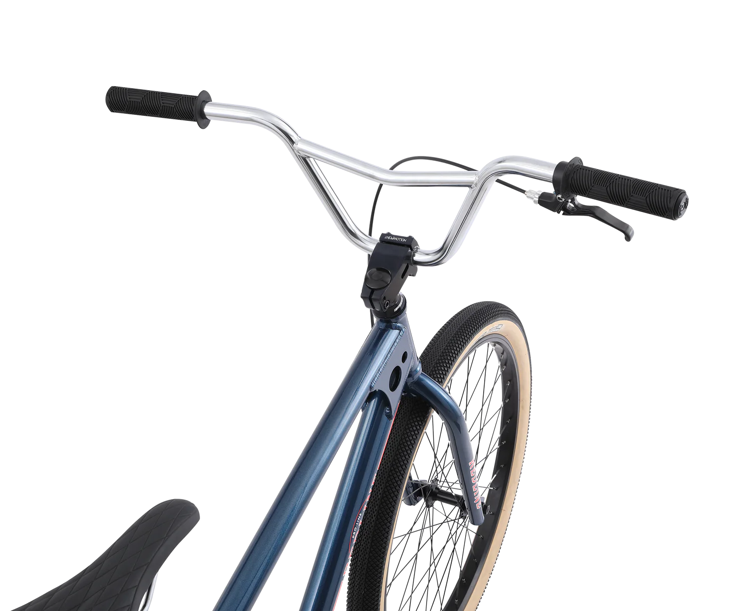 The Redline SQB-26 is a nod to our very first production BMX bike, the Squareback. It features an aluminum alloy frame and a full chromoly steel fork. Vintage-style graphics, double head tube gussets, and the V-shaped handlebar let you roll around town in retro style. You can also bust out a few laps at your local track, thanks to the race-worthy components, including Flight cranks, a Redline Sport saddle, and Vee Speedster 26×2.125 inch tires.
