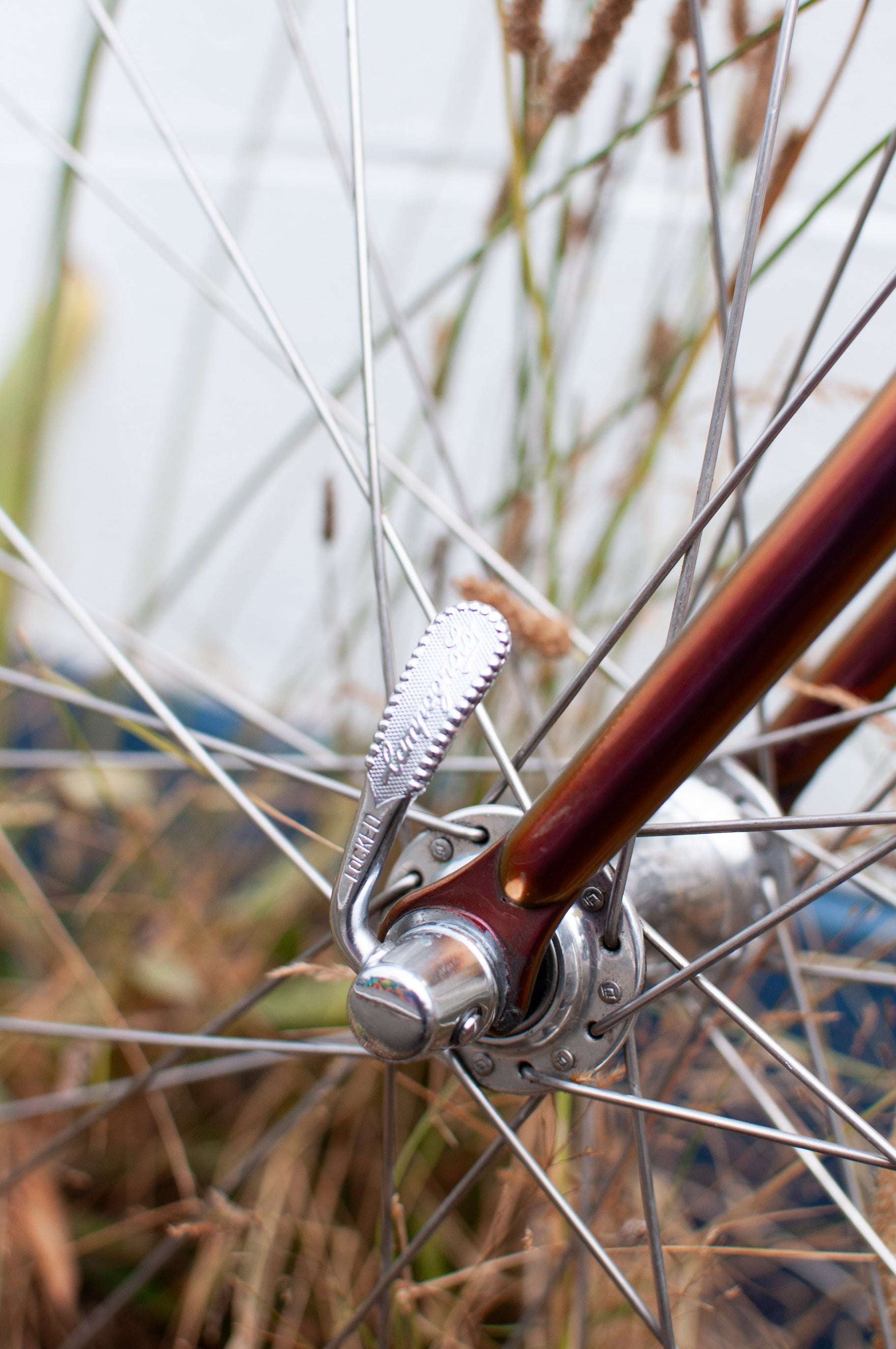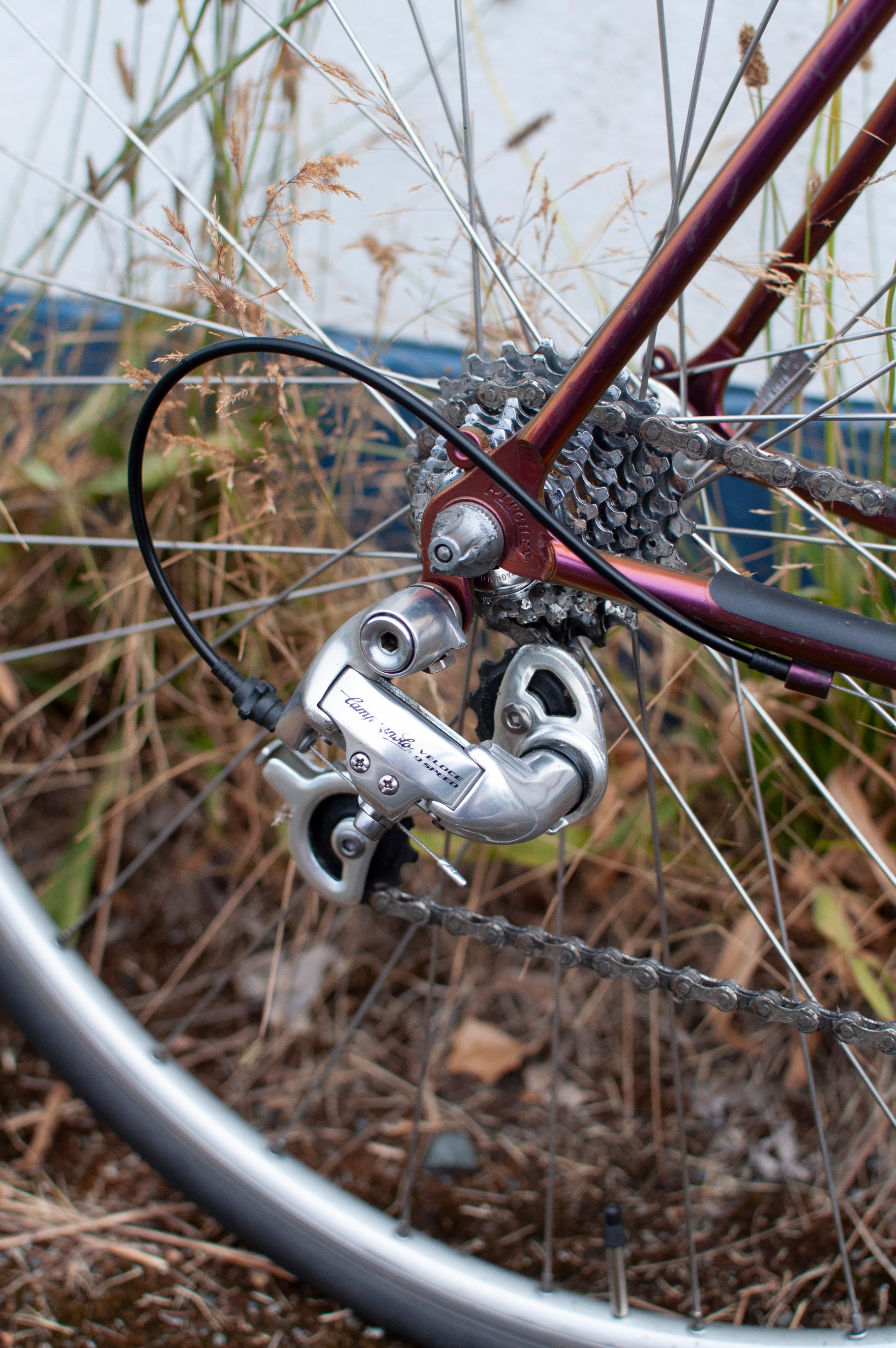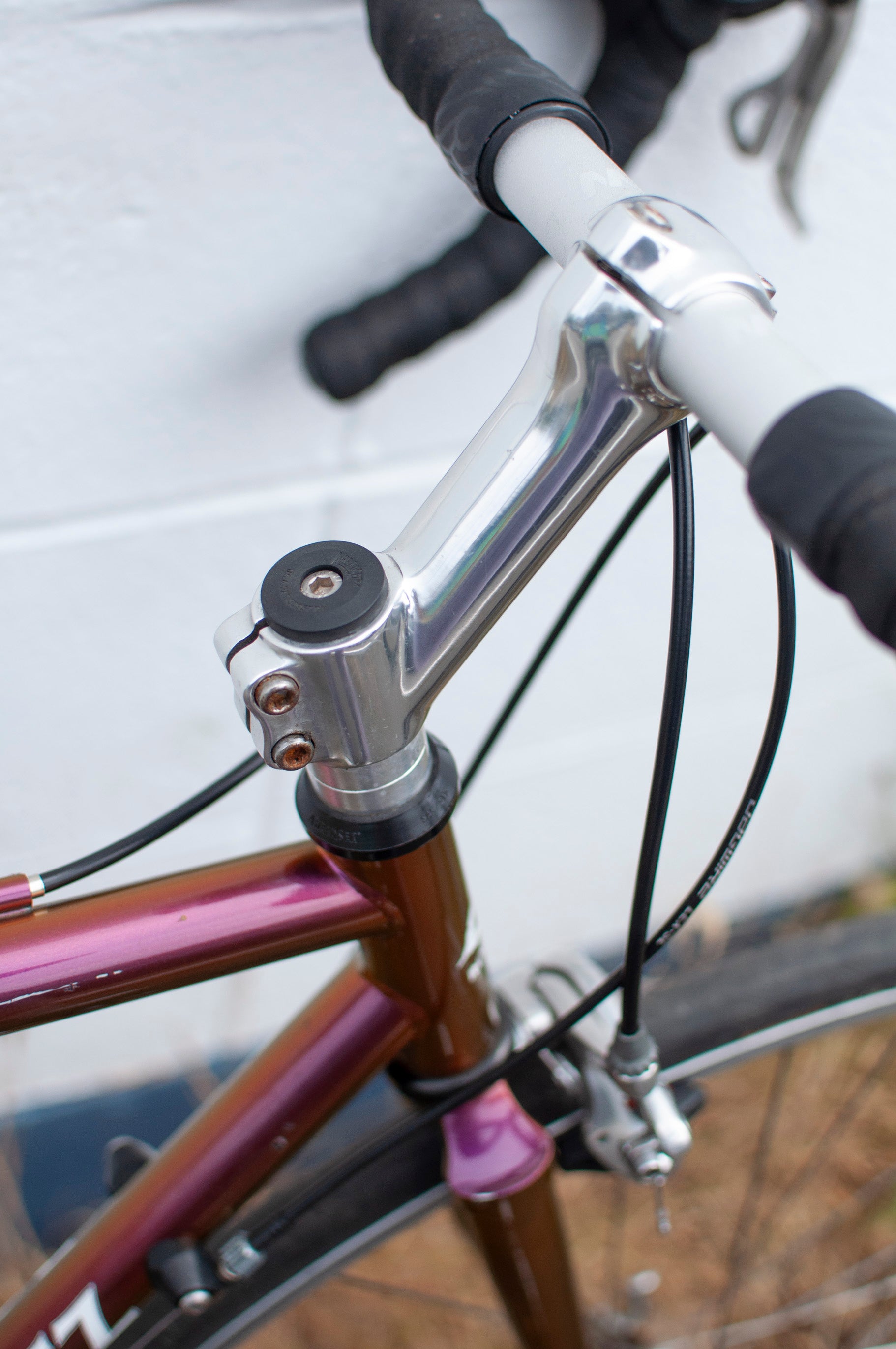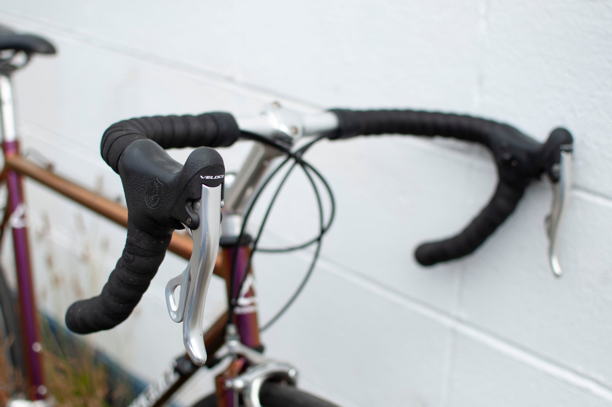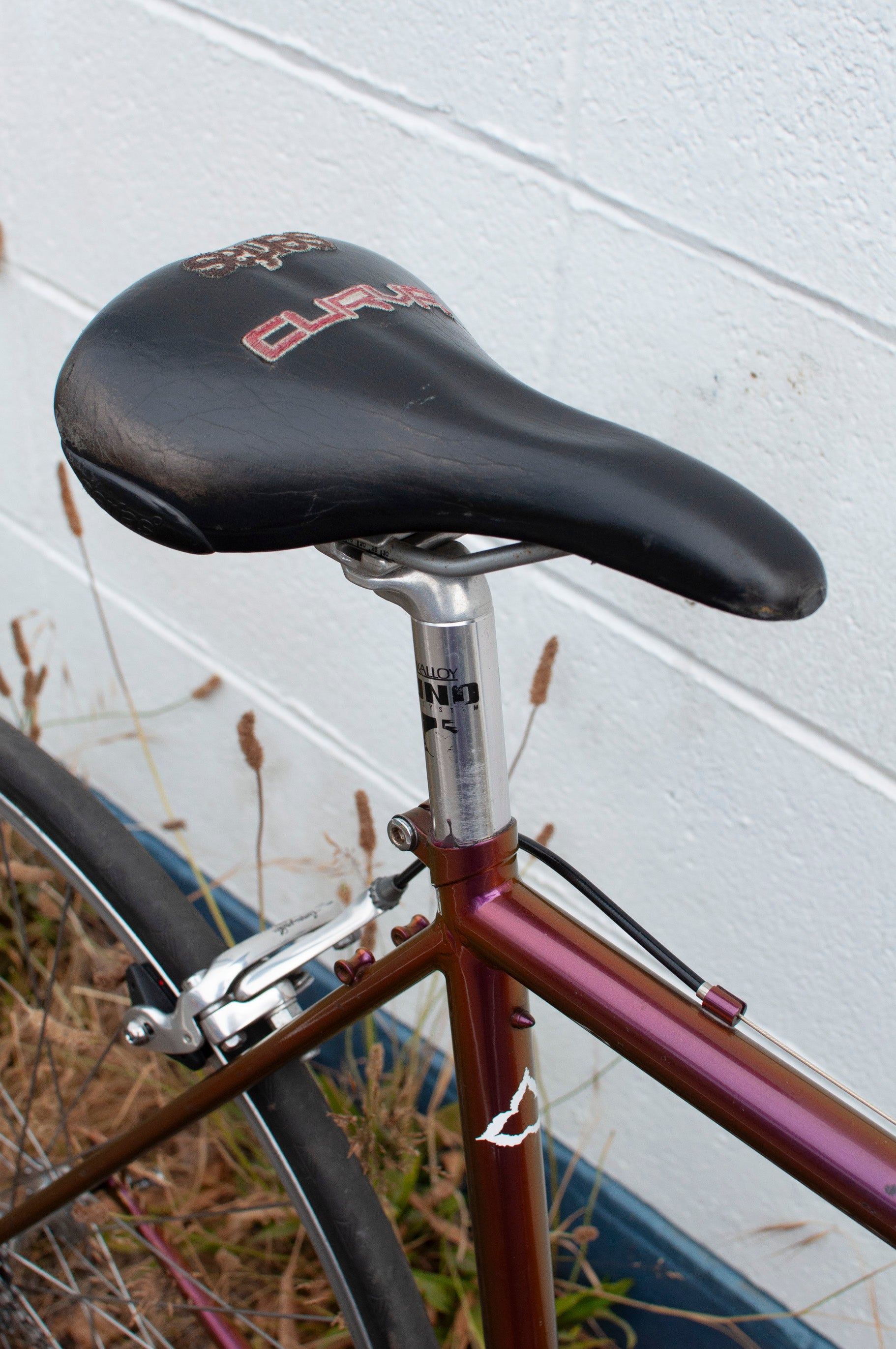 This stunning secondhand scustom made-in-Seattle bike is outfitted with full Campagnolo hubs, brakes, and drivetrain. The shimmery iridescent purple custom paint job is in very good shape, with minor scuffs and chips to be expected from a used bike, but no severe damage. This bike was previously loved and well maintained! We've completely tuned it up for a good start to its next chapter tooling around Seattle streets (or wherever you may want to take it).
