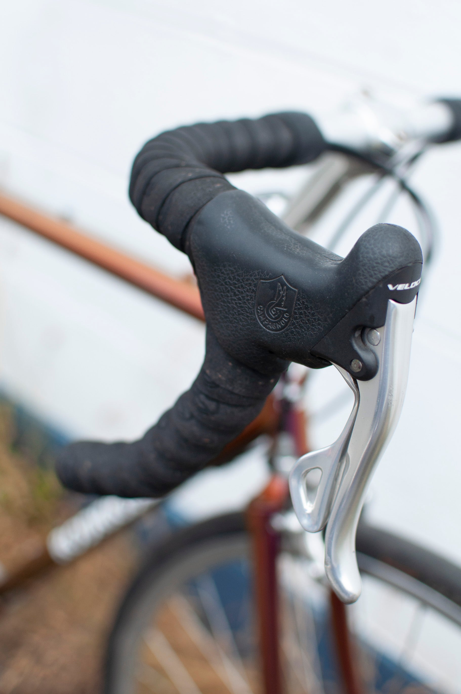 Black headset, silver riser stem, drop bars, black foam bar tape in good shape.